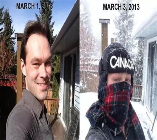 不光是卡尔加里,即便是西边的温哥华也能在两三天里感受四季。加拿大的天气就是这么任性!