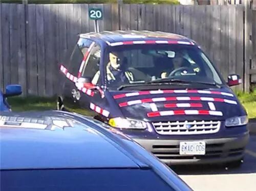 这类用来在夜间让自己的车变得容易被察觉的亮条在加拿大不少车上都使用,但如此密密麻麻的使用在一辆车上……没错,也许很安全!
