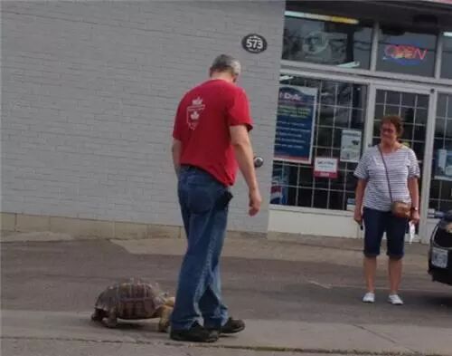 且不说这只海龟自己适不适应走在街上让人围观,重要的是,以海龟的爬行速度,这位加拿大主人遛它一次得花多久时间才能回家啊?
