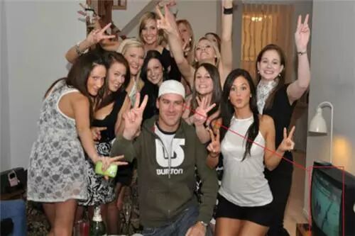 注意看这位哥们的眼神,即便在拍合影时都瞅着电视里的冰球赛。没办法,冰球是加拿大的国球,重要性没有人可以比……