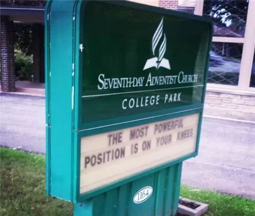 这座教堂位于安大略省的一个小城市,教堂宣传板上竟然赫然写着:一个人最强有力的姿势就是跪着!