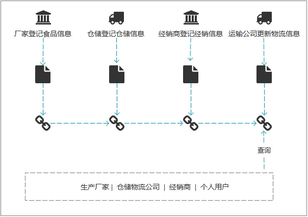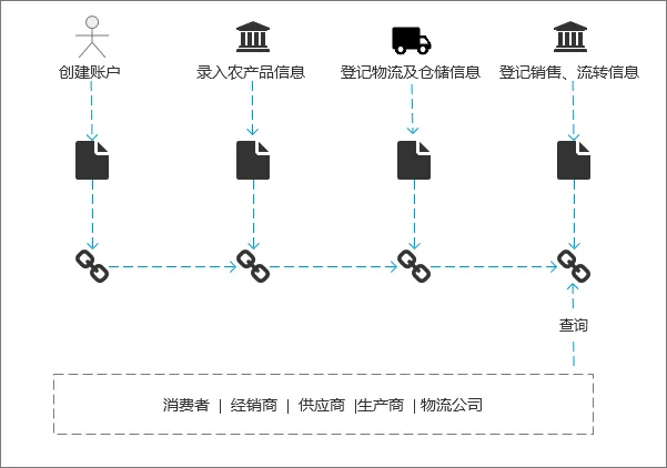现在,我们将农产品的原料、种植、采摘、物流、销售、流转等不同环节的信息,或各个企业对食品信息进行的登记更变过程记录到区块链上: