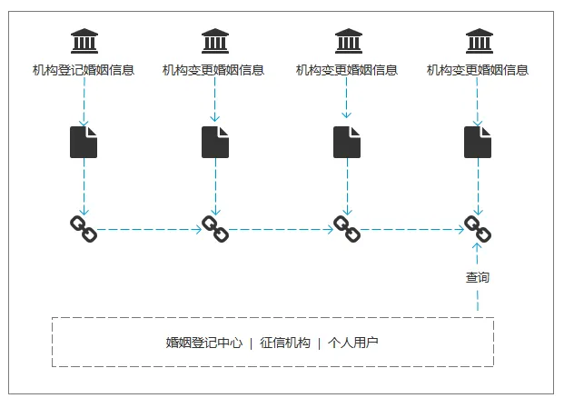 归根结底,由于目前全国的婚姻信息没有联网,目前只能在当地公安系统或婚姻登记中心查询,导致需要个人婚姻信息的时候需要到登记处进行证明开具,对于个人使用婚姻信息时极为不方便,也存在着重婚的风险。由于目前使用的是集中式数据存储的方式,存在数据丢失或被篡改的风险。假若个人丢失纸质婚姻登记书的同时数据被篡改,那么无法证明该婚姻的状况。