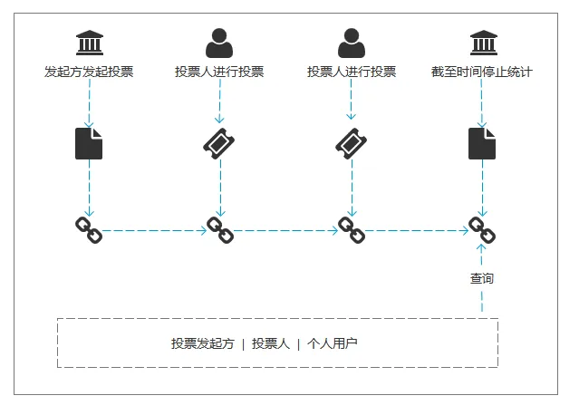 现在,投票发起方在链上发起投票,投票过程所有数据登记在链上,投票结束后将投票结果公布: