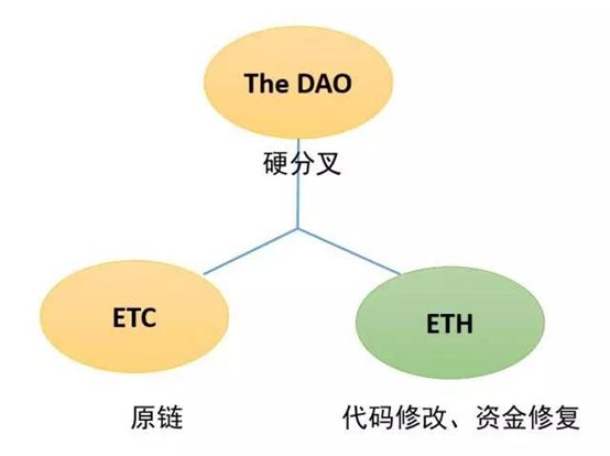 2016年7月20日以太坊实施了在第1920000区块高度上硬分叉方案,分成了两条链,分别称为ETH chain和ETH Classic chain,代币分别称为ETH和ETC。之后便诞生了以太坊经典区块链版本及其代币ETC(以太坊经典)。
