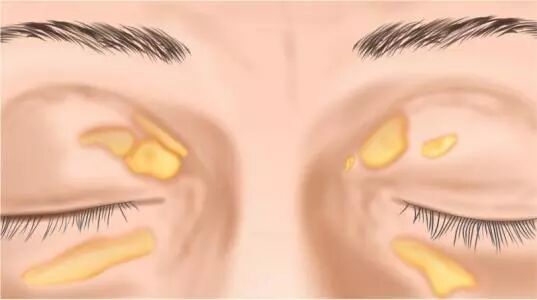 生于双上眼睑内侧皮肤的淡黄色柔软的扁平疣状隆起,是由含脂质的组织细胞在皮肤内形成,它是人体内脂质代谢障碍的外在皮肤表现,经常伴有心血管疾病(冠心病等)或高脂血症等。