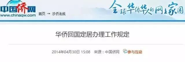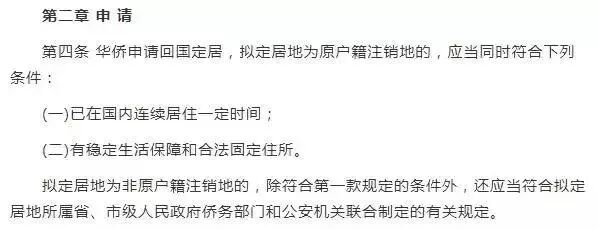 根据《国务院侨务办公室 公安部 外交部关于印发<华侨回国定居办理工作规定>的通知》