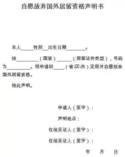 其中华侨应提交《自愿放弃国外居留资格声明书》