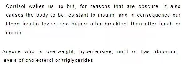 1、早上起床的时候,身体内皮质醇处于高水平状态。此时摄入面包/包子/米饭等高碳水化合物,会引起胰岛素飙升。