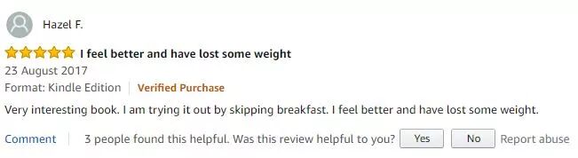 "很有趣的一本书。我开始不吃早饭,感觉不错,体重也减轻了。"