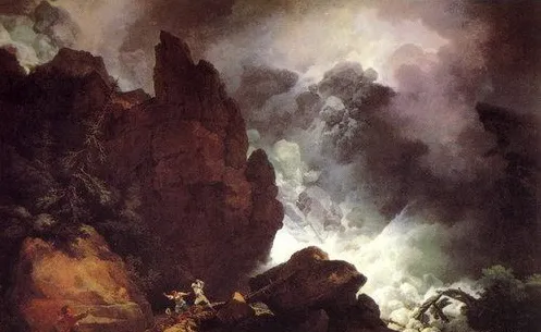 这是一幅以严谨的手法描绘阿尔卑斯山雪崩景象的风景画。画家十分注意造型与色彩的关系,近景的暖色与中、远景的冷灰形成对比,产生了纵深的空间感,块状的山岩造型及不同斜线的构图,造成了雪崩的动感与恐怖气氛。画家以写实的手法,再现了雪崩的奇异与壮观景象,形象地表现了山崩地裂、气势逼人的自然威力。