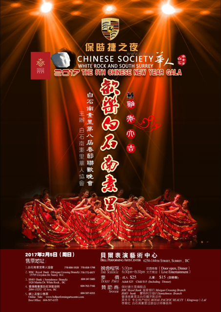 第8届欢乐白石春晚得到了保时捷Langley--Ming 的大力支持, 再次特别感谢保时捷Langley 中心的冠名赞助, 也希望以后保时捷-Ming可以为当地华人提供最好的购车服务。 这场白石及大温地区最具特色的春晚,是团圆晚宴与文艺表演共享的春晚,是当地居民参与度最高的春晚。票价亲民优惠。晚会本着“多元文化引领、娱乐分享、明星的梦想、百姓的舞台”原则,诚邀著名文化团体、艺术家和社区文艺人才同台献艺,并着重为社区青少年提供展示自我的平台,专业舞台、音响、灯光舞美背景提供,节目全新编排呈现,形式丰富多彩。