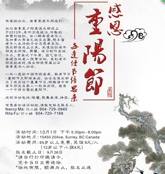 我们白石南素里华人协会和属下的夕阳美俱乐部带给白石南素里的老人朋友及家人的又一大型相聚一堂的活动-中西合璧的老人节晚餐会