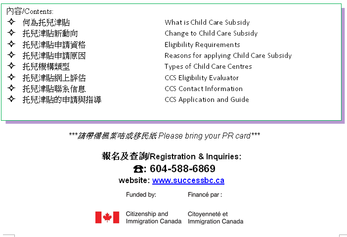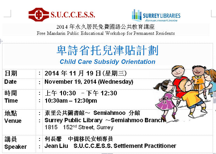 协会通知-卑詩省托兒津貼計劃免费讲座